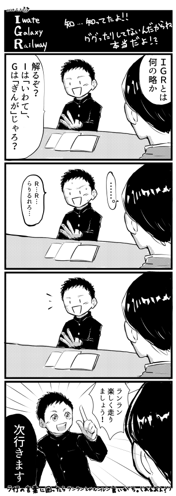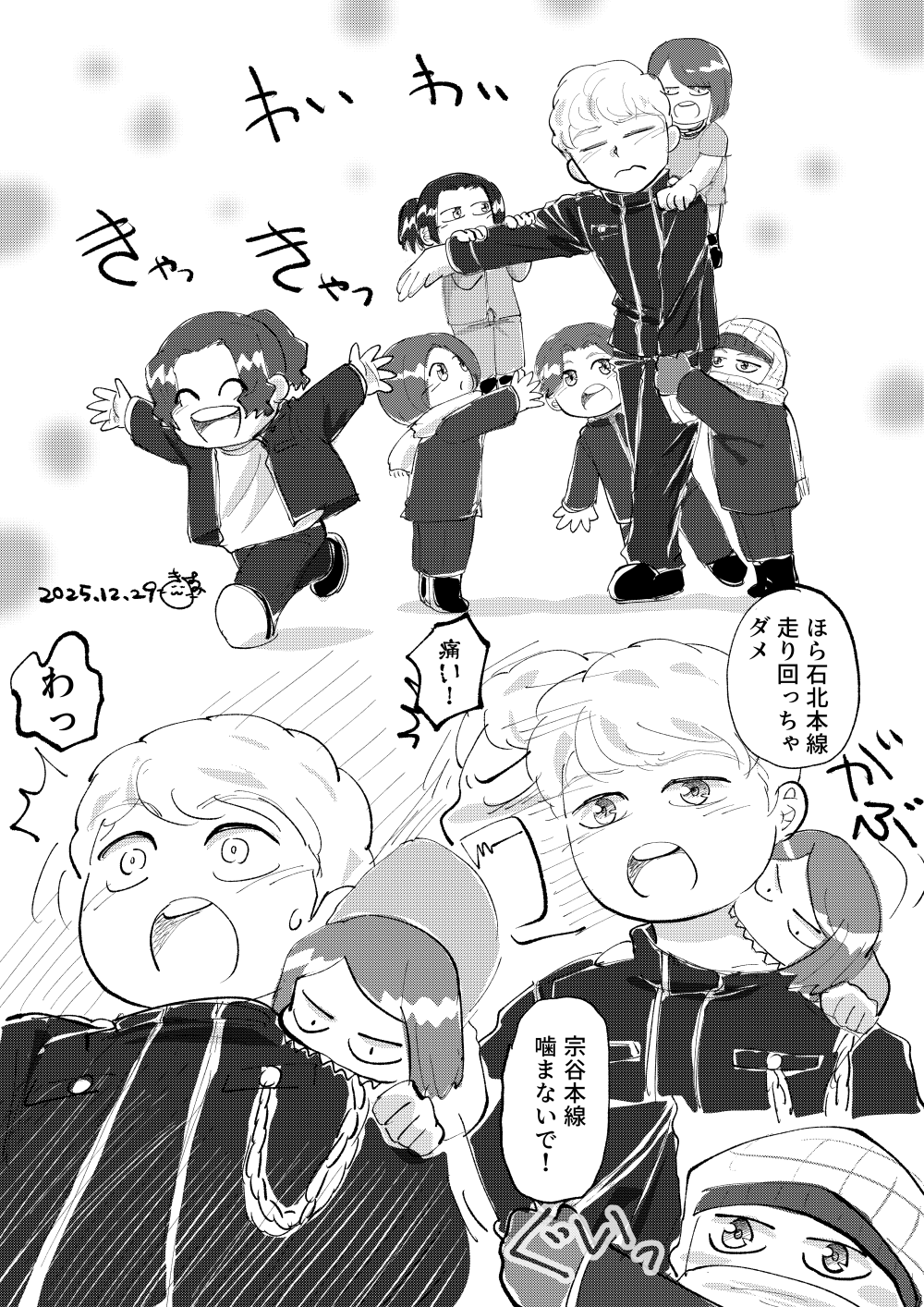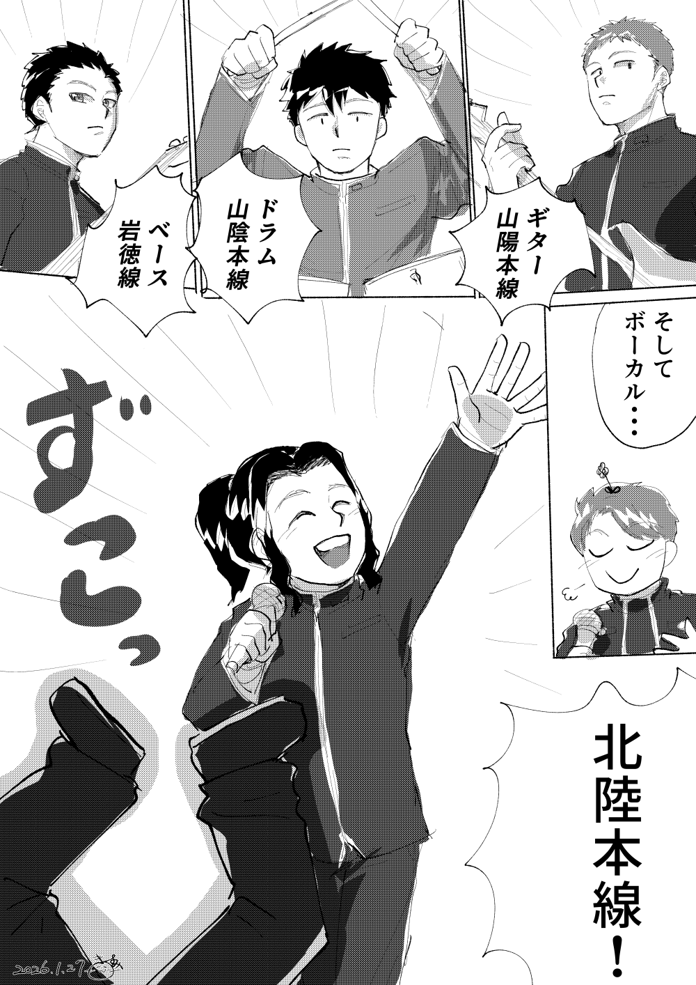 二次創作で主に描いてるのは紙端国体劇場様の[青春鉄道]という作品です。